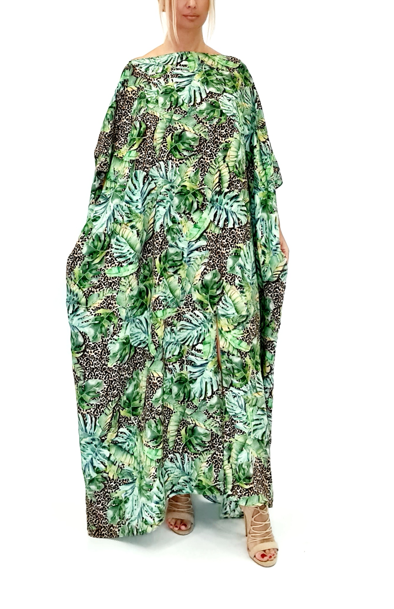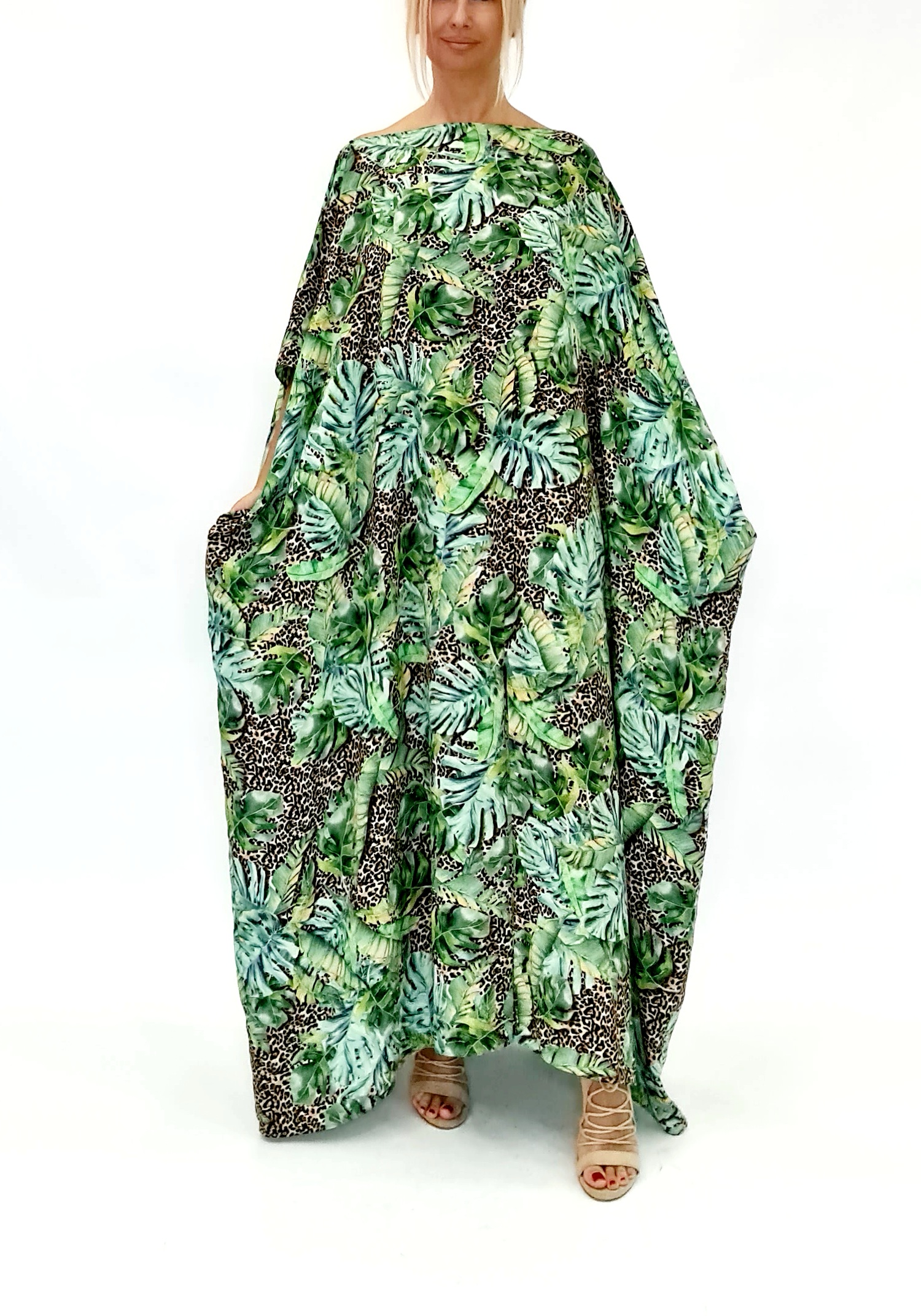 SILK KAFTAN DRESS – TROPICAL GARDEN